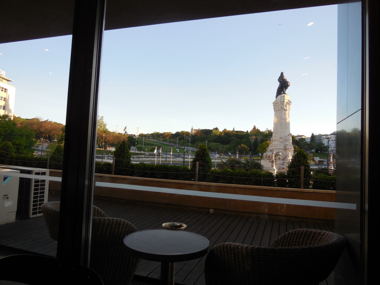 朝食レストランの大きな窓からはポンパル侯爵広場が見渡せ、気もちよく食事ができます。