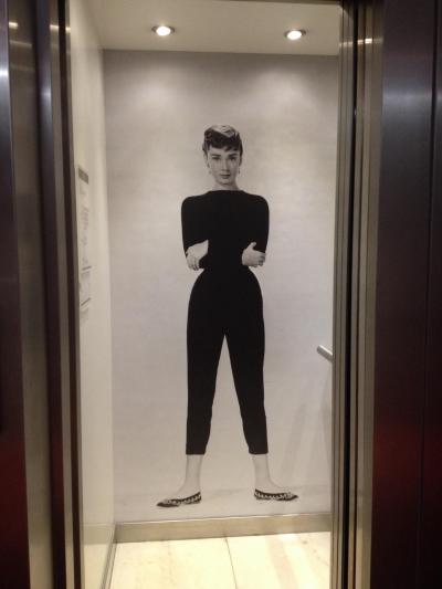 映画の場面がホテルのあちこちに出てきます。エレベーターは二基あって、それぞれオードリーとボギーが迎え入れてくれます。