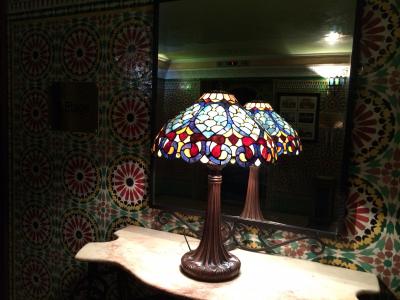 エレベーターホールのタイルのモザイク模様やランプがアラビアンな気分を盛り上げてくれます。
