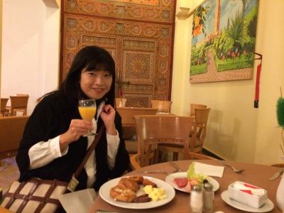 エッグスタンドはなかったけど、美味しいパンに野菜、ハム、卵、飲み物など、モロッコのホテルでは一般的な品揃えではないでしょうか?