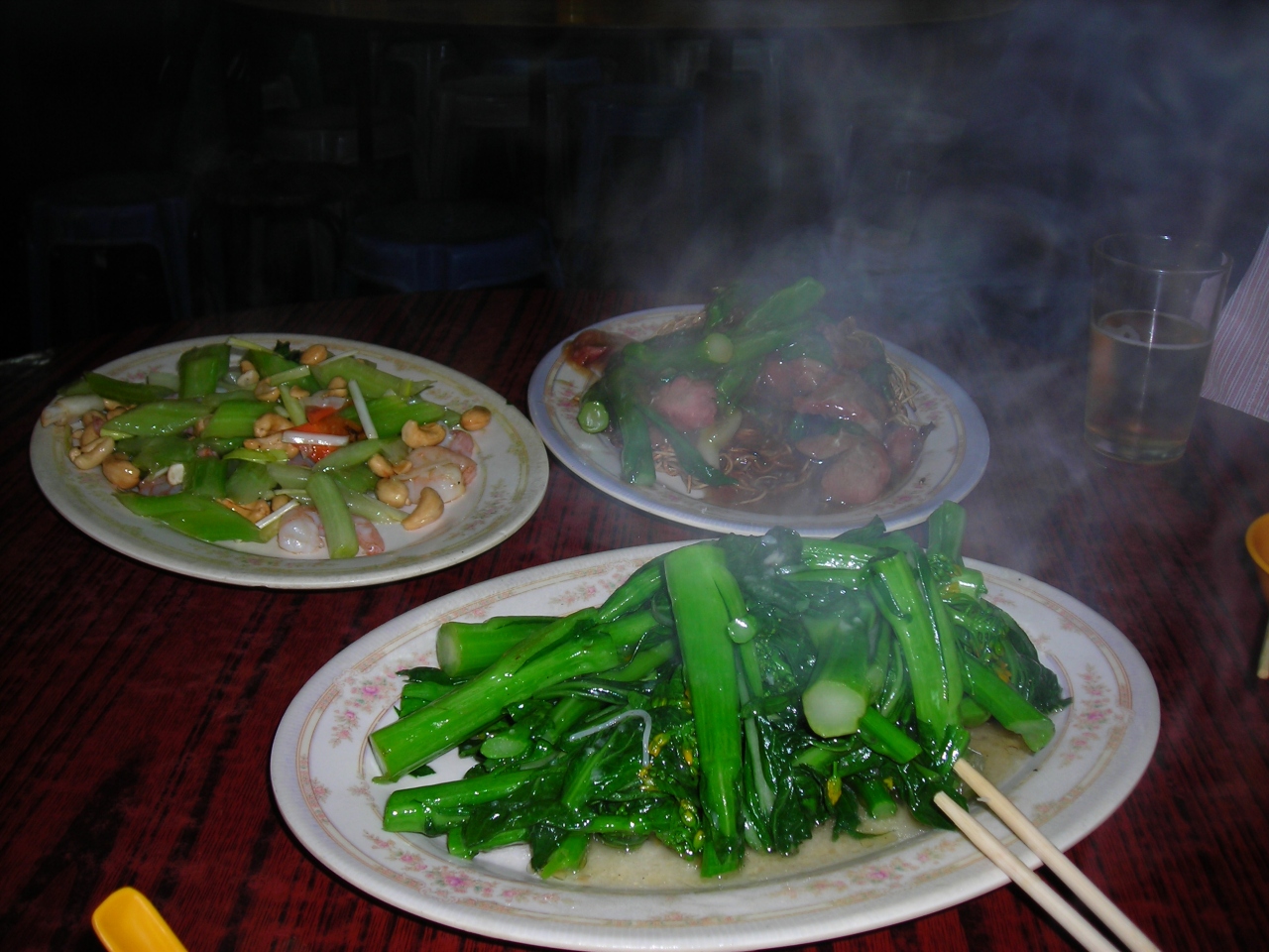 身振り手振りで春雨の入ってないことを訴えると、始めはお椀が欲しいのか?と勘違いされたりしたけど、壁一面のメニューの「grass noodle」と書かれた部分を指差し訴えると、「アァ、ウンセン!!」とお湯で戻した春雨をスープに入れてもらうことにやっと成功。