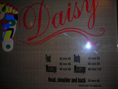 入口にマッサージの種類・時間・値段が表示してあり明朗会計で安心ですし、施術の腕も確かなのでお勧めです。