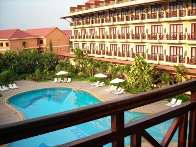 ホテルは4階建ての低層型で、プールをぐるっと囲むように客室棟が建っていました。