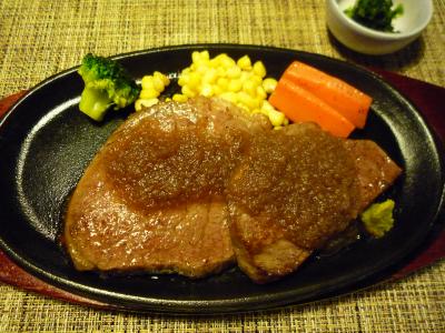 高千穂牛サーロイン150g・サラダ・味噌汁・ライス・ドリンク・デザート付4000円也。