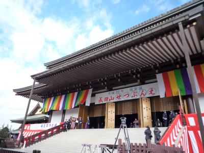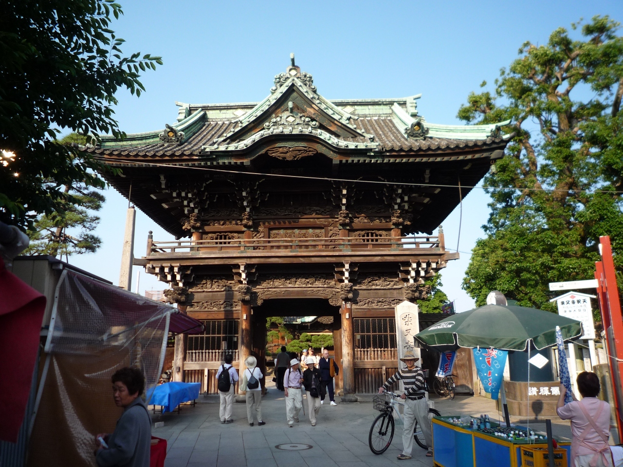 京成柴又駅から参道が始まり、門(南大門)左手には大鐘楼、