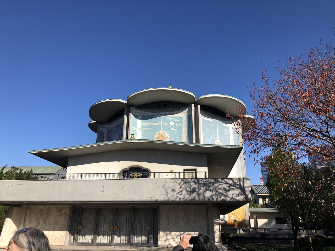 秋の一般公開および大嘗宮の特別公開の時期に皇居へ行きました。大嘗宮がある東御苑に一際目につく建物がありました。それが、この桃華楽堂でした。独特な色使いと、個性的なデザインが印象的でした。モザイク柄が綺麗でした。