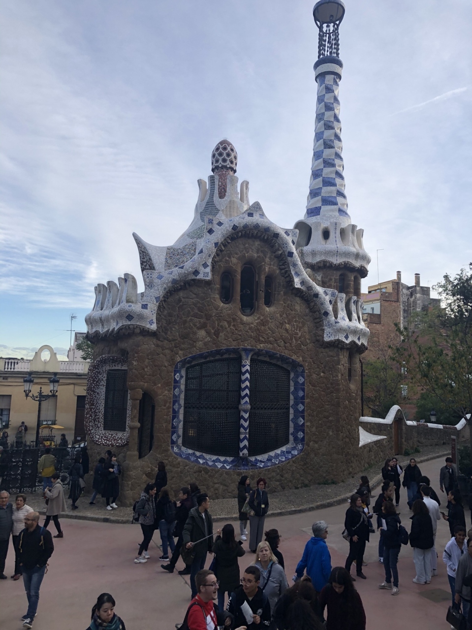 グエル公園はガウディの建築で、観光の定番スポットです。ヘンゼルとグレーテルをイメージしたようなお菓子の家は現在はお土産屋さんになっていました。お土産屋さんの向かいには無料で使えるお手洗いがありました。