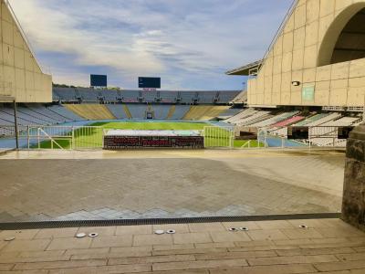 モンジュイックの丘へ行く際、ガイドさんに車で連れてきてもらいました。バルセロナオリンピックを知らない世代ですが、来年東京オリンピックが開催されるということもあってとても感慨深く見学しました。聖火台も見えました。