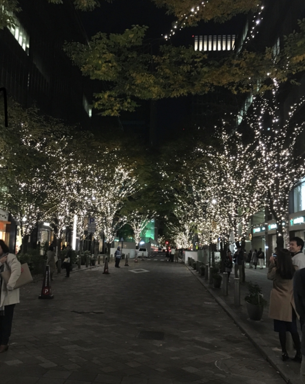 帝国劇場にミュージカルを観に行ったとき、丸の内仲通りを通りました。冬の時期で、ミュージカル観劇後は外も暗くなっており、イルミネーションがとてもきれいでした。夜でも人が多くてにぎやかな印象でした。とてもよかったです。