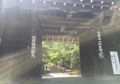嵯峨嵐山駅から歩いて行きました。本堂は現在改装工事中ということを入り口で案内されました。そして期間中に再び二尊院に行ったら粗品をいただける券をいただきました。