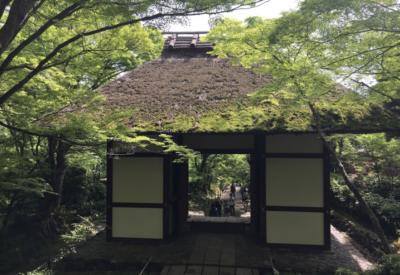 常寂光寺にあります。拝観料を払ってまっすぐ行った、階段を上ったら見える門です。茅葺き屋根の門を初めて見ました。趣があってとても素敵でした。