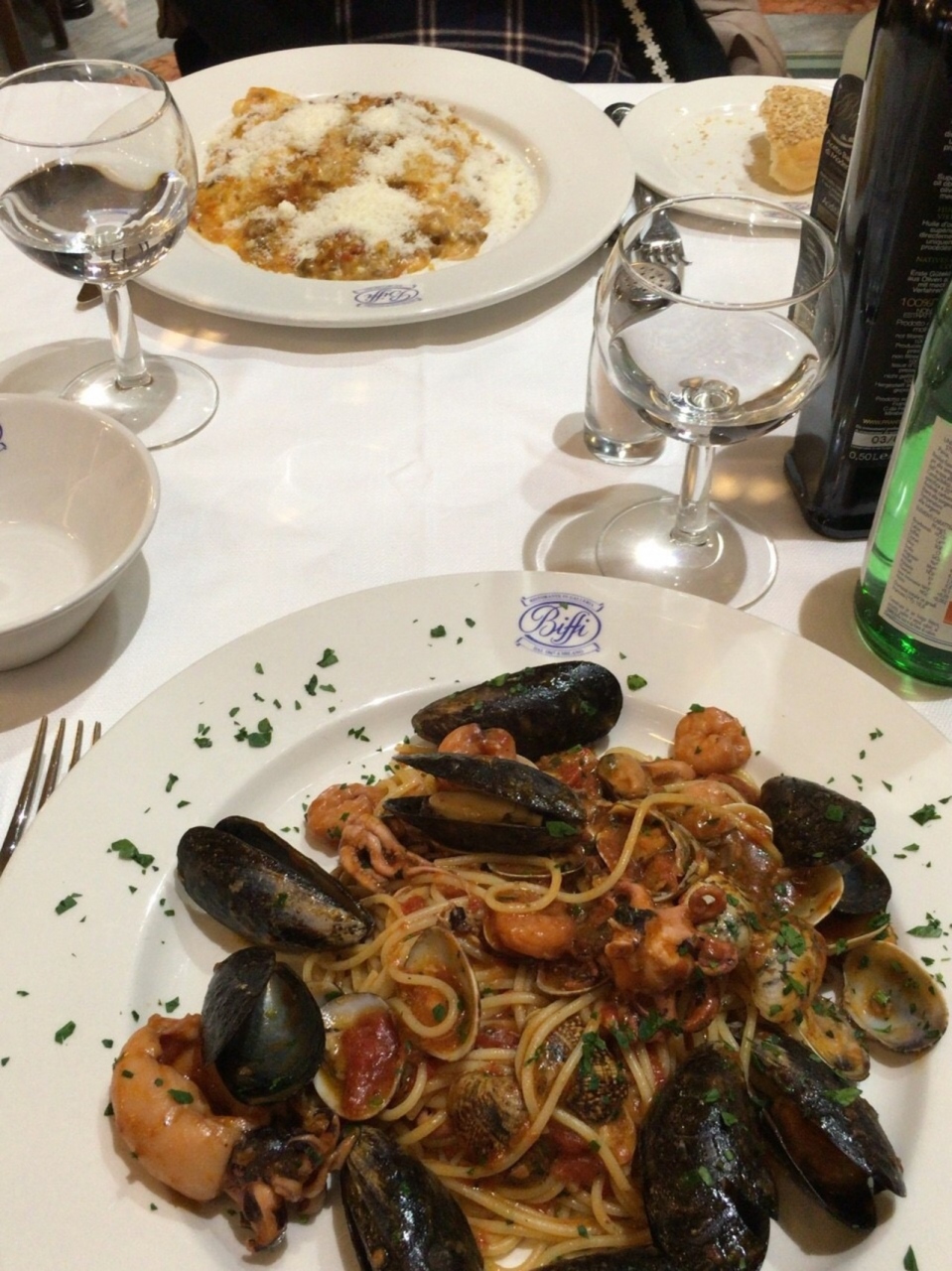 ヴィットーリオ・エマヌエーレ2世のガッレリア内にあるレストランです。このあたりのラストランはどこも高価ですが、イースター当日に営業していただけありがたかったです。