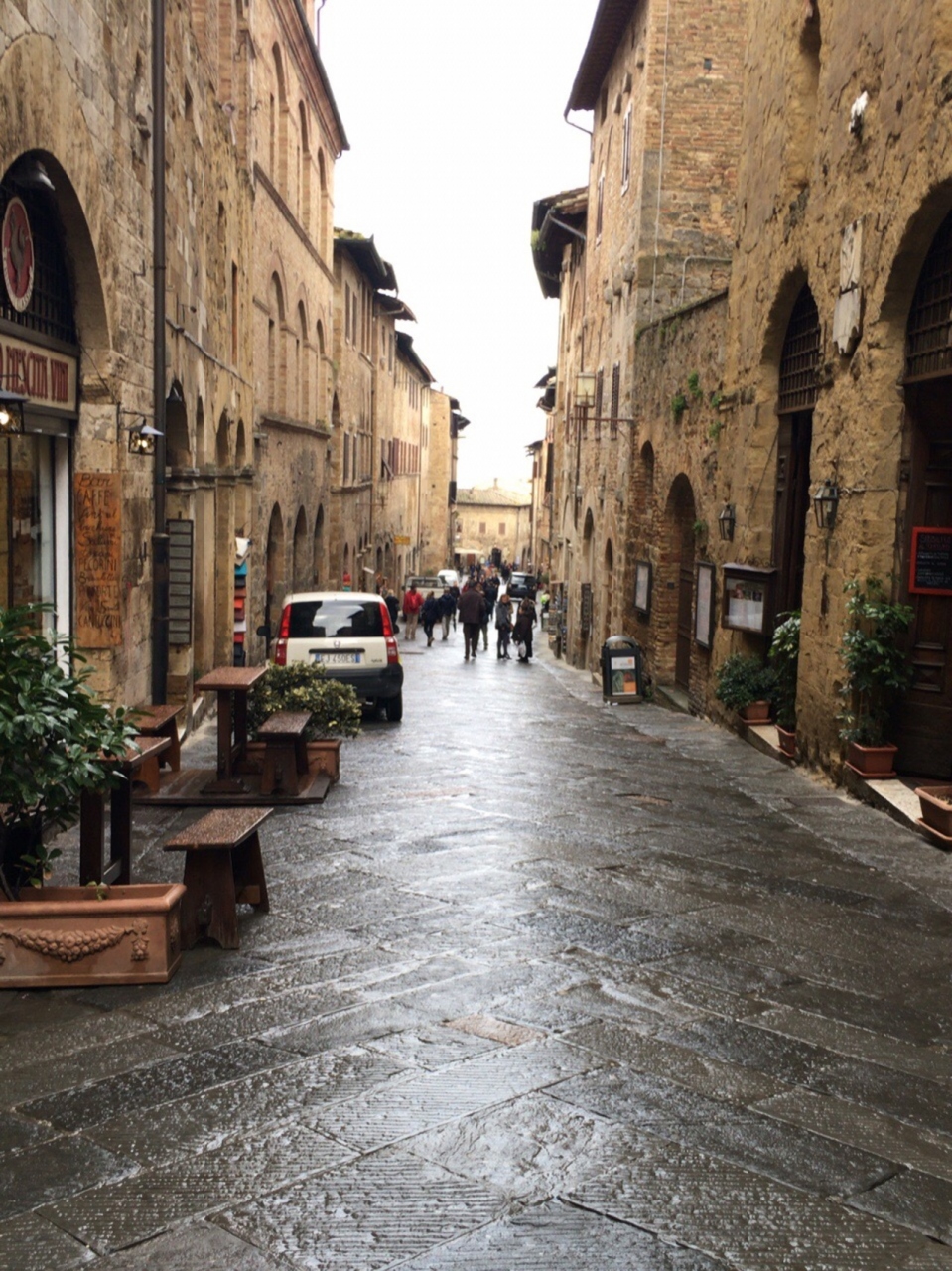 サンジミニャーノ歴史地区の入り口から南北にまっすぐ続く道です。狭い道ですが、サンジミニャーノ歴史地区の中では広い方で、メイン通りです。