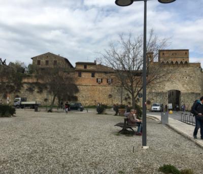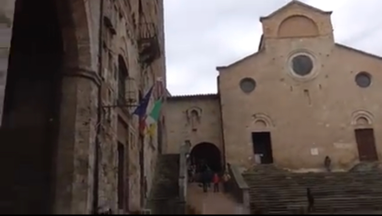 サンジミニャーノ歴史地区に南のサンジョヴァンニ門から入り、まっすぐ進むと左手に見えます。サンジミニャーノの中心というかんじでした。ドゥオモ 、ポポロ宮が建っています。広場を見渡すと、塔の多い街であることがよくわかりました。この広場は観光客がたくさんいました。