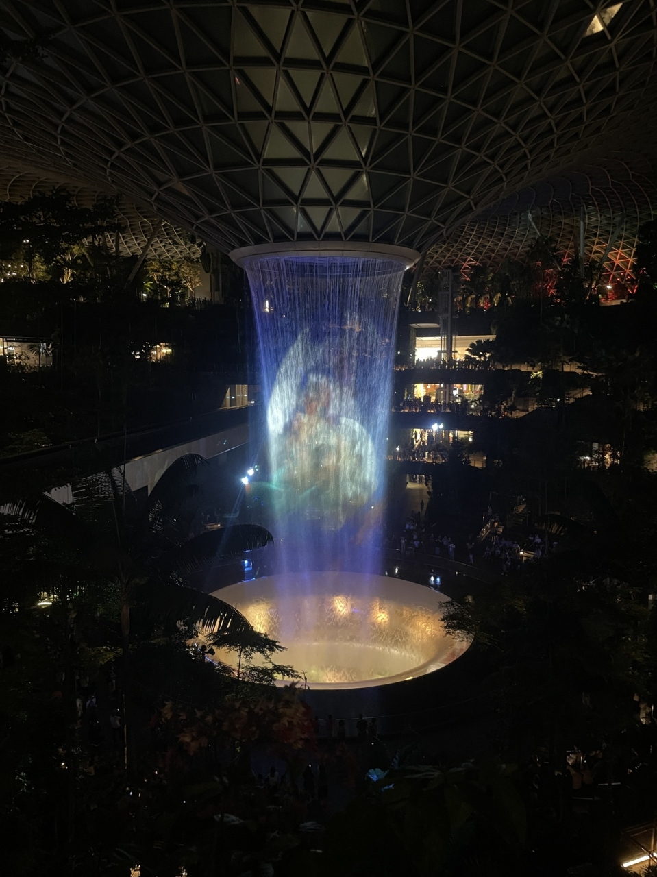 夜は滝がライトアップされています。決まった時間には、音と光のショーが開催されました。1回目は2階から鑑賞しました。ディズニーとコラボしたショーでとてもよかったです。2回目は下から鑑賞しました。1回目とショーの内容が違ったので、1日で2度見る価値ありました。