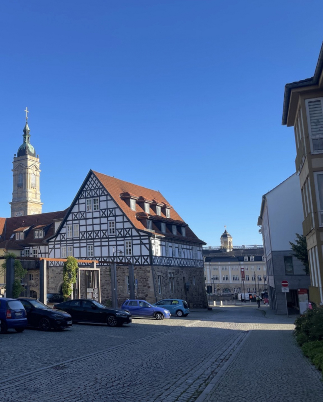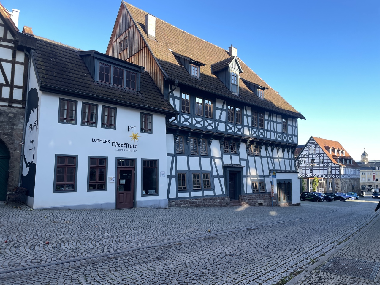 アイゼナハ駅から徒歩10分ほどのところにある広場です。ゲオルグ教会のそばで、この辺りは賑やかな雰囲気でした。訪問した日の朝は、ちょうど露店を準備していました。イベントや露店が開かれる場所のようです。周辺は飲食店も多くありました。