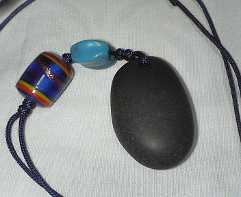 九イ分には、色んなお店があって、どのお店か説明しづらいのですが、主にストラップや根付を売っているお店の奥に、九イ分特産試金石と書かれた黒い石を見つけたら、炭坑の町だった九イ分らしいお土産に、この石を使ったオリジナルのアクセサリーを作ると、良い記念になります。お店の人にオーダーメイドを頼めば石とビーズを組み合わせて、紐を選べば作ってくれます。