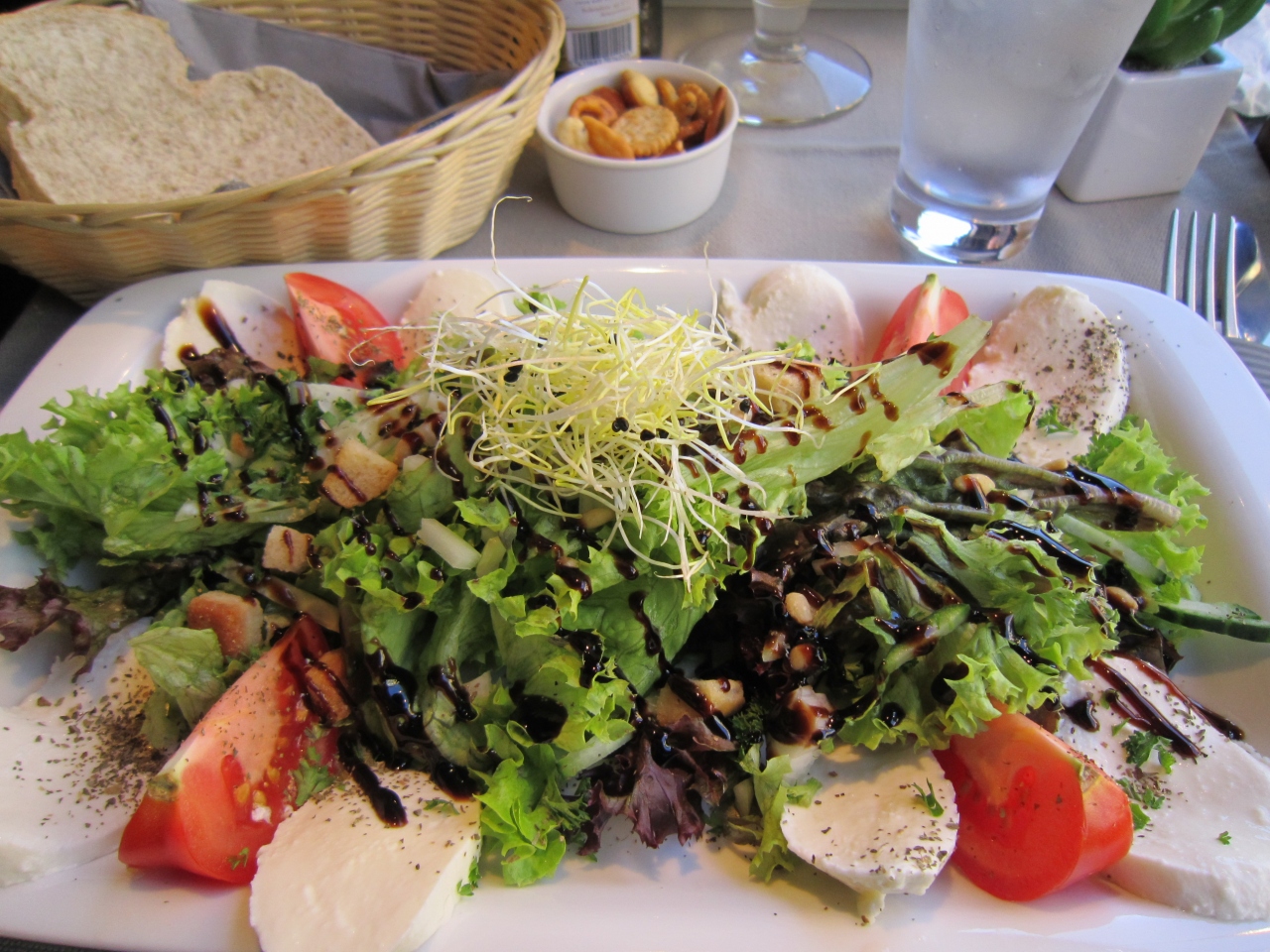 私たちはサラダとサーモンのサンドウィッチをシェアして食べました。