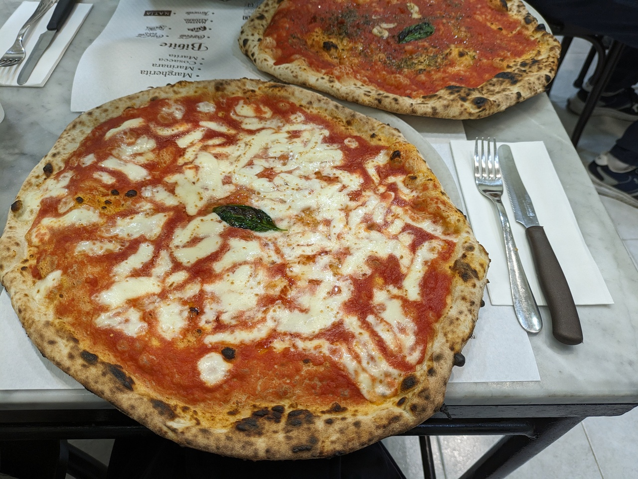 ナポリピッツアの人気店、平日の昼間でしたが、お店の前は人だかり。番号札を引いて(13:30頃)、16時頃戻るように、と言われ戻ったところ、番号は既に過ぎてしまっていました。取り直し!と言われ、シブシブ取り直し。1時間ほど待って入店できました。