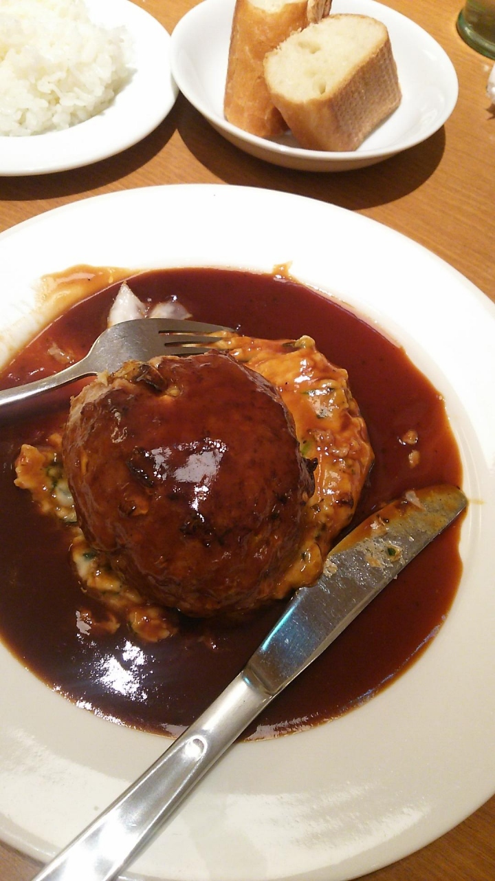 前菜はキッシュとサラダ。メインはハンバーグを選択しました。