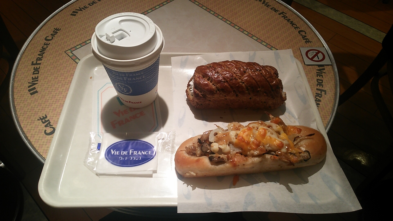 ランチタイム、金ごぼうのパンと季節限定のマロンのパンを購入。