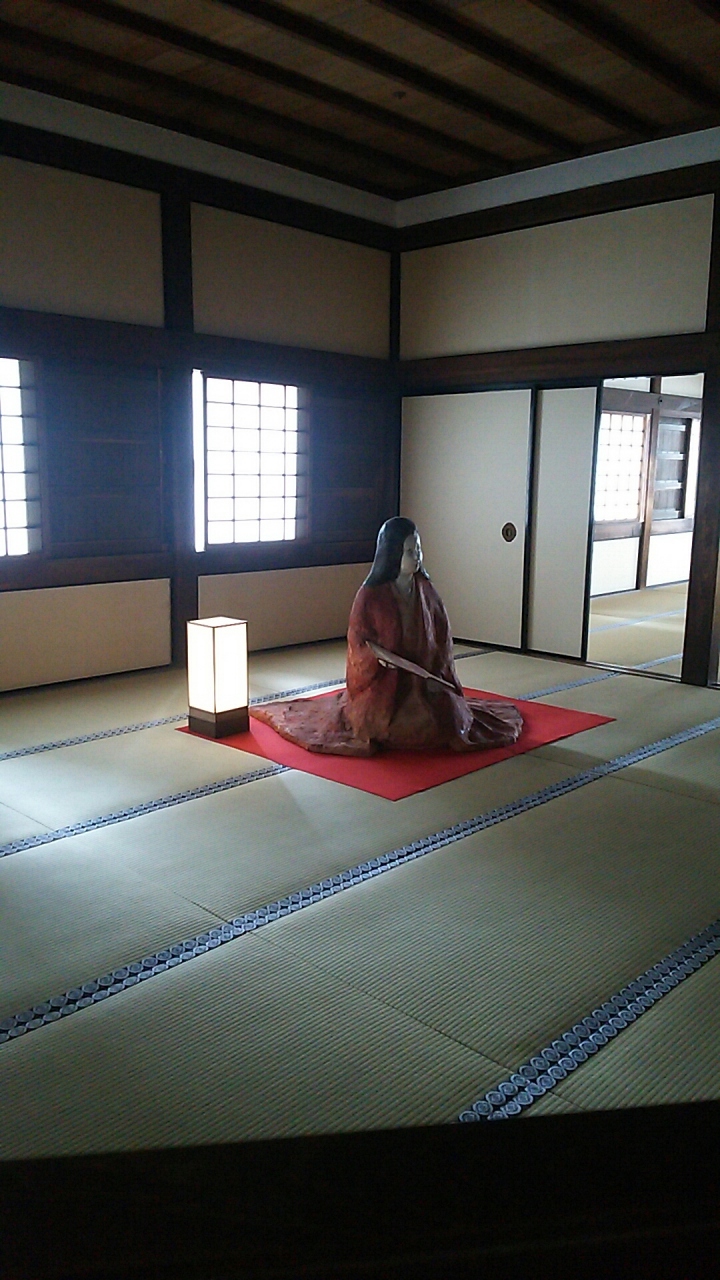 姫路城・西の丸にある長い廊下(百間廊下)とその脇にある部屋を通りすごした先にある、千姫化粧櫓です。彼女が嫁入りした際に、自由に使える空間を、ということで作られた部屋だそうです。千姫のオブジェ人形が置かれています。