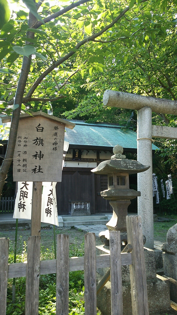 源頼朝のお墓へ向かう石段の麓、左手にある白旗神社です。