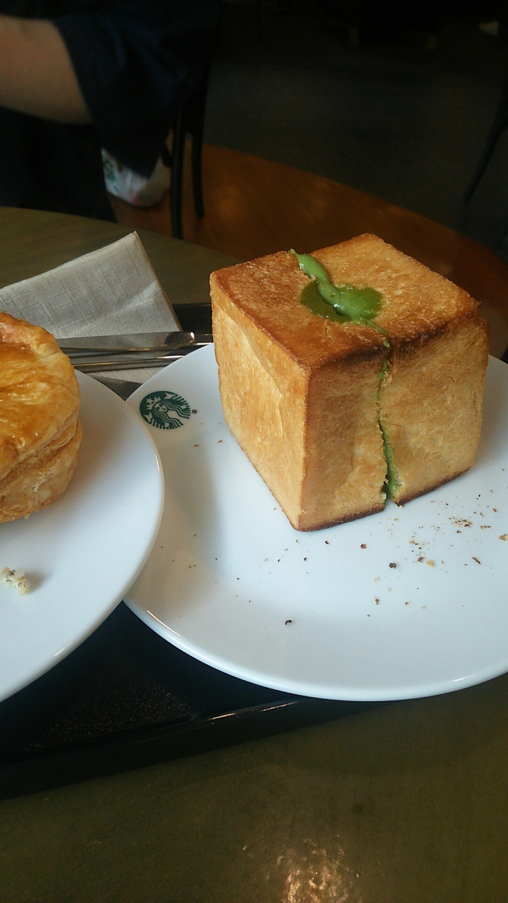 ミートパイと、キューブ型で、中にクリーム(ピスタチオ?か、ずんだに近い味がしました)が入ったパンをオーダー。