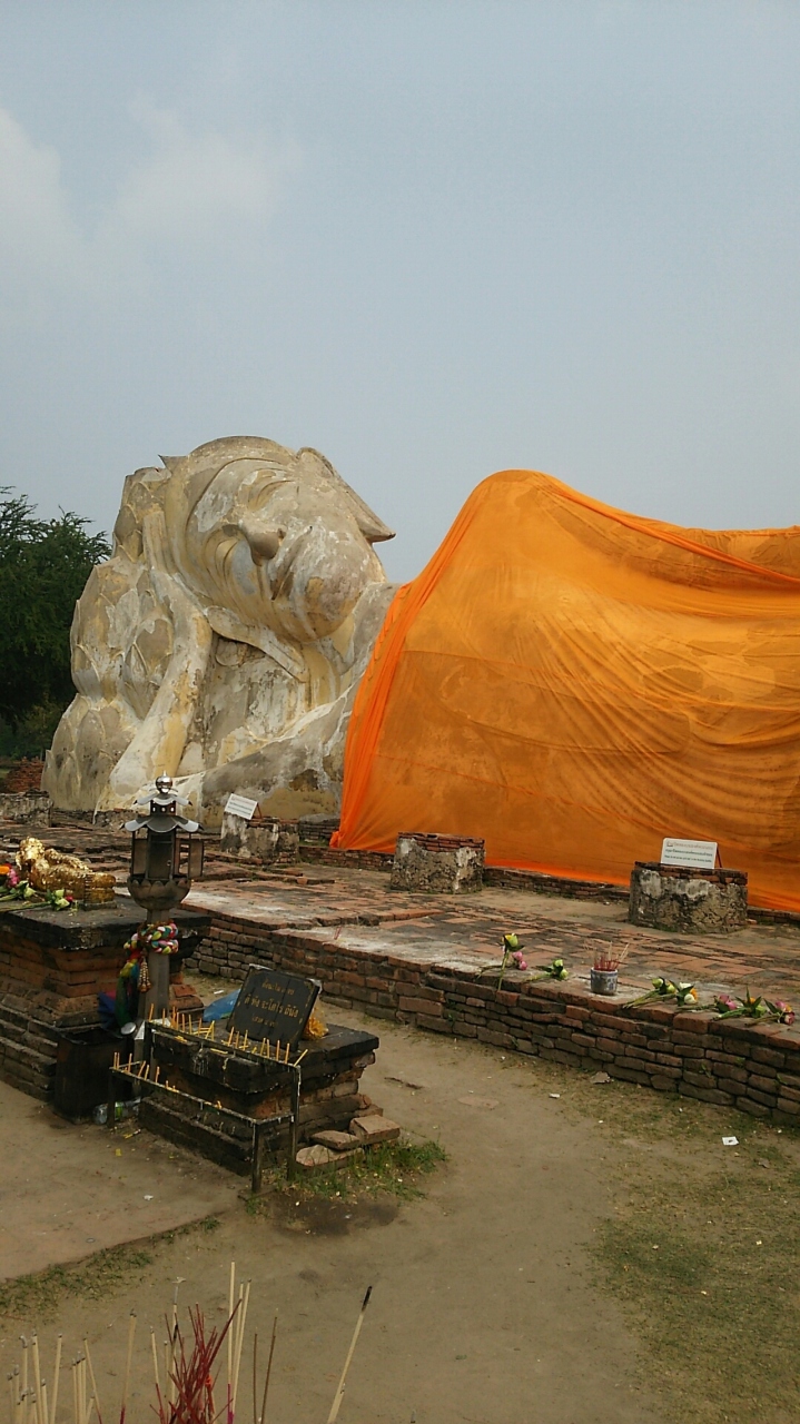 アユタヤにある寺院、ワットヤイチャイモンコン境内にある寝釈迦です。