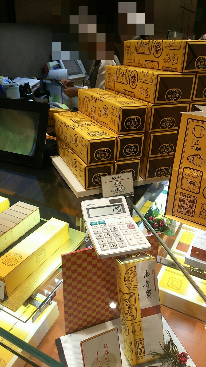 銀座三越地下一階にあるカステラの福砂屋さんです。自宅用に、一番小さいサイズ(0.6号)を購入しました。