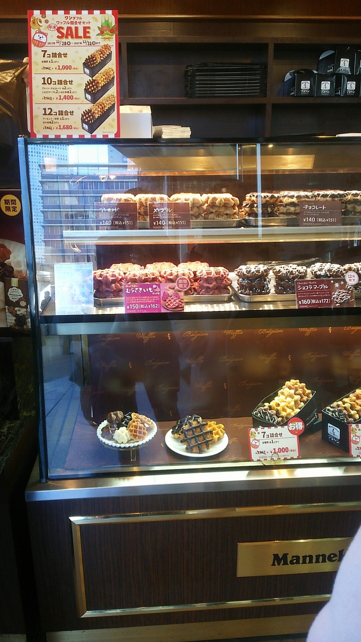 プレーン、チョコ、抹茶、イチゴ等のワッフルがあります。