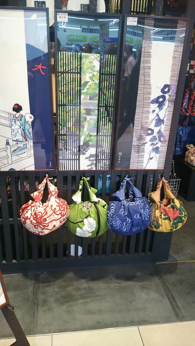 いかにも日本風の絵柄の風呂敷が並び、使い方のサンプル(バッグのようにしてみたり、ワインを包んだり、額に入れたり)も置いてあり、わかりやすかったです。
