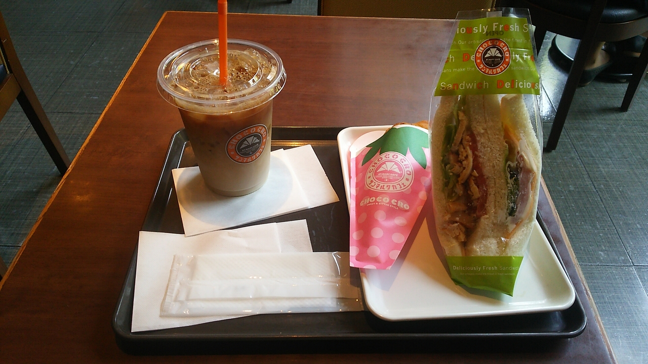 サンドイッチとイチゴチョコクロ、アイスラテをいただきました。