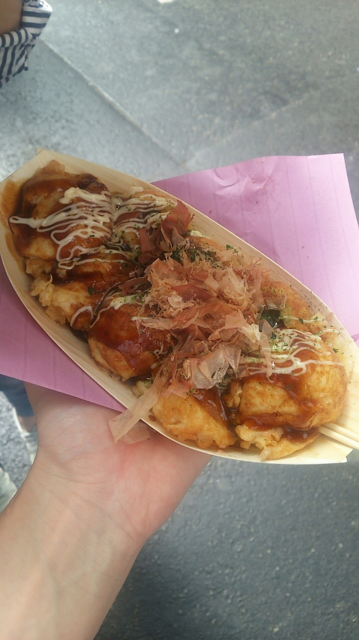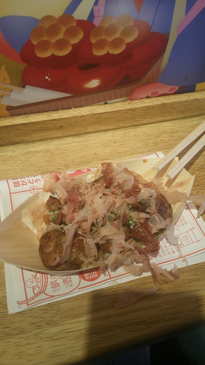 たこ焼きは中も外もふわふわ、とろとろしており、一個一個が大きめでした。