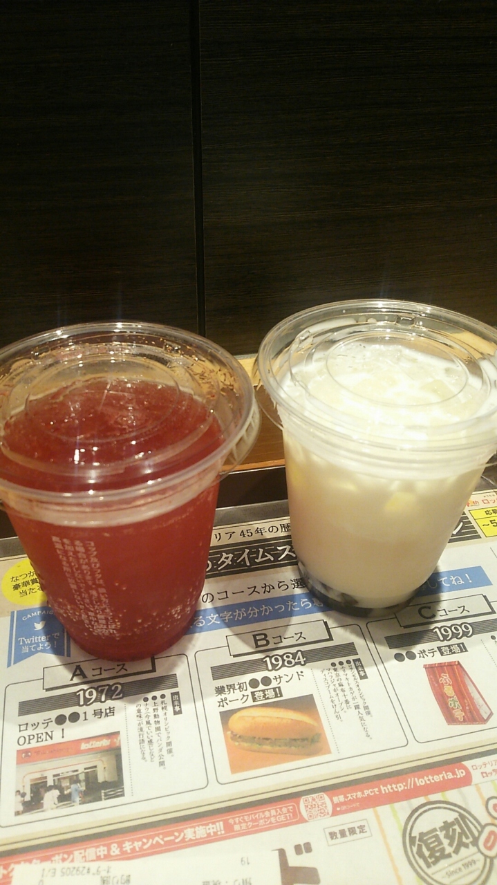 ストロベリーソーダと甘酒タピオカドリンクをオーダー。