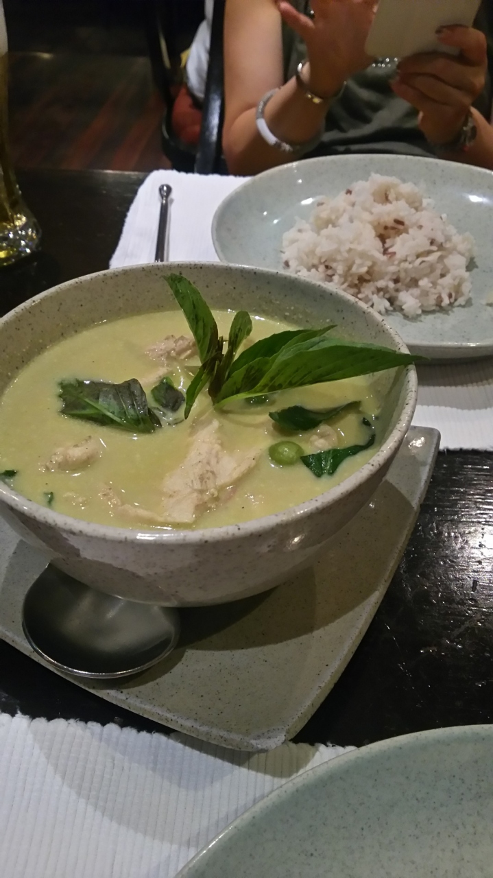 グリーンカレーはココナッツミルクが効いて、かなりまろやかなお味でした。