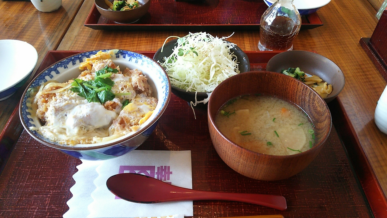 どんぶりいっぱいに、大きなかつが乗っており、食べごたえ充分。