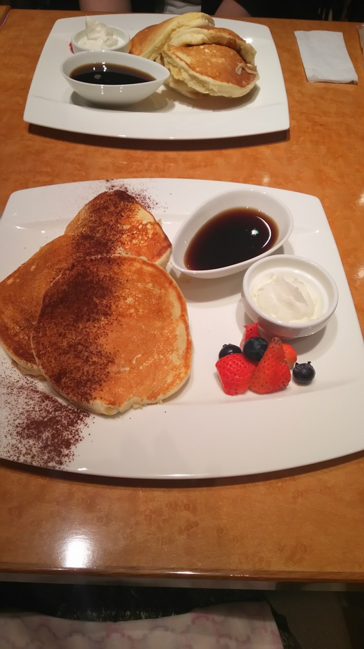 シンプルなパンケーキと、水だしのアイスコーヒーをいただきました。