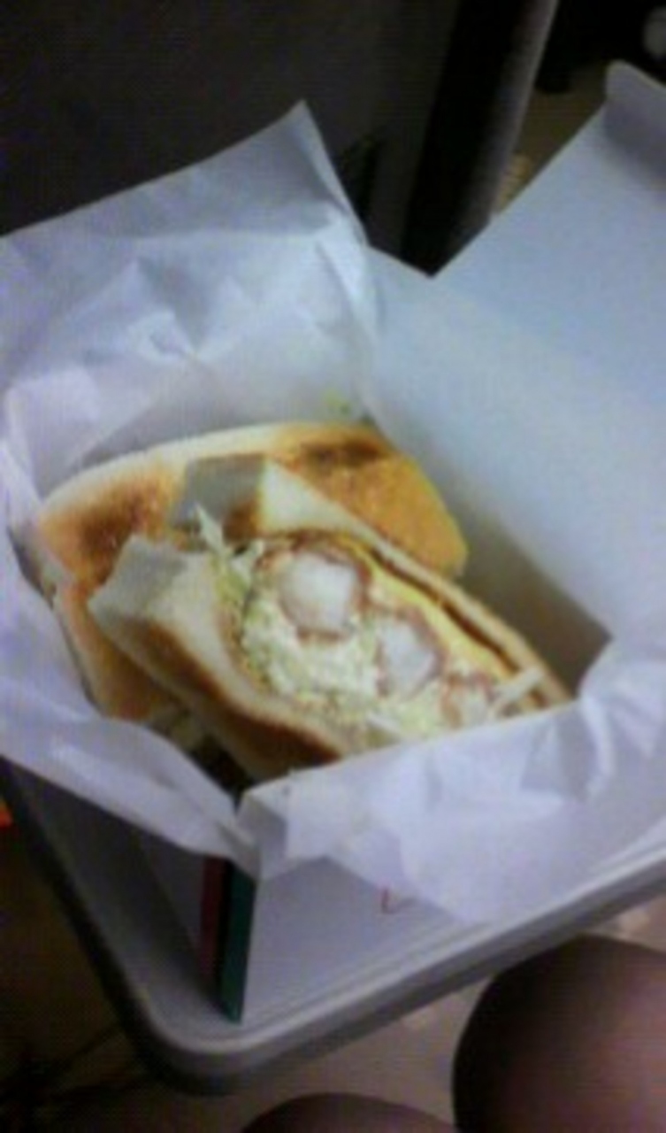 コンパル、メイチカ店で、帰りの新幹線で食べる用のエビフライサンドを購入しました。