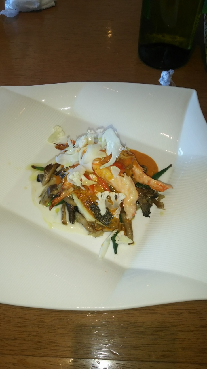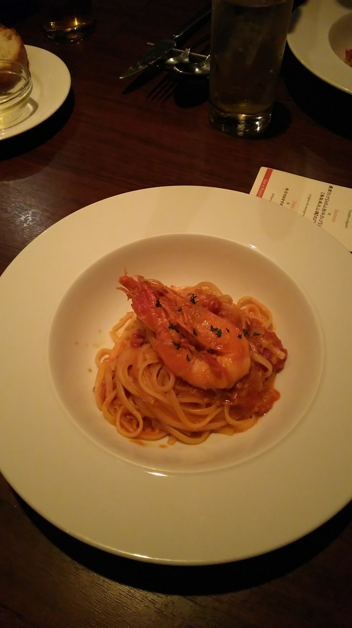 お料理は、前菜盛り合わせ、海老と蟹のパスタ、フォアグラのリゾット、牛と鶏の盛り合わせ、デザート。