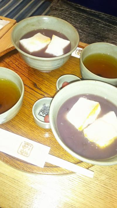 ぜんざいは、焼いたお餅がふたつ入ってヴォリュームたっぷり。こしあんではなく、つぶ餡のぜんざいです。- 旅行時期
