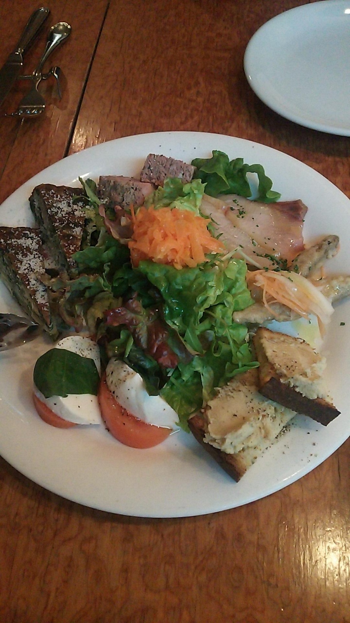 丸ノ内線本郷三丁目から徒歩5分強、セブンイレブンの地下にあるイタリアンレストランです。前菜の盛り合わせ、しらすのパスタ、お肉のグリルをいただきました。