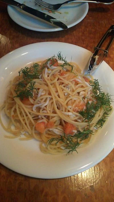 前菜は、カプレーゼ、キッシュ、カルパッチョ等6種類。しらすのパスタはこちらの定番品です。