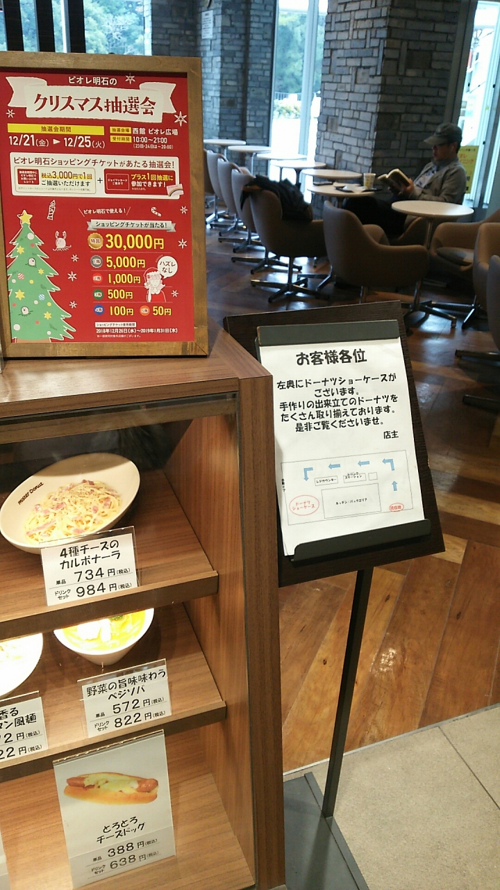 ドーナツだけでなく、パスタ等の軽食の取り扱いもあるようでした。
