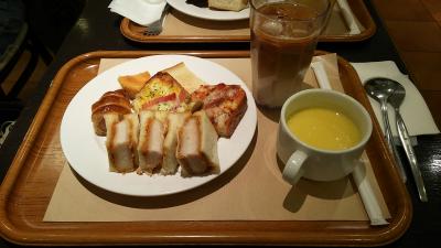 朝お伺いしました。モーニングセットは2種。クロワッサン、サラダ、ドリンクで470円でした。