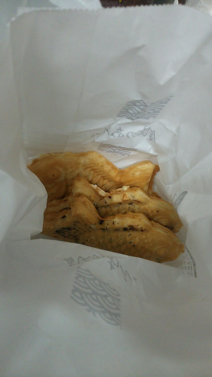 薄焼きのあんこと、期間限定のお芋餡のたい焼きを購入しました。