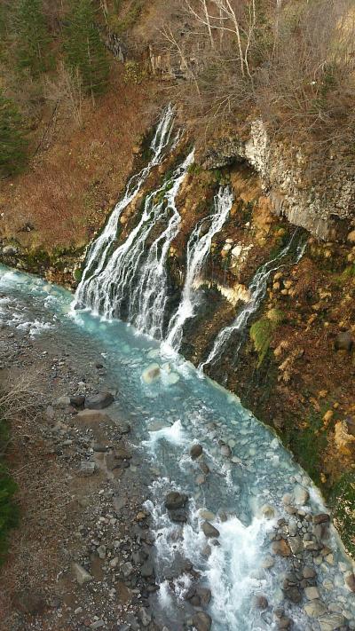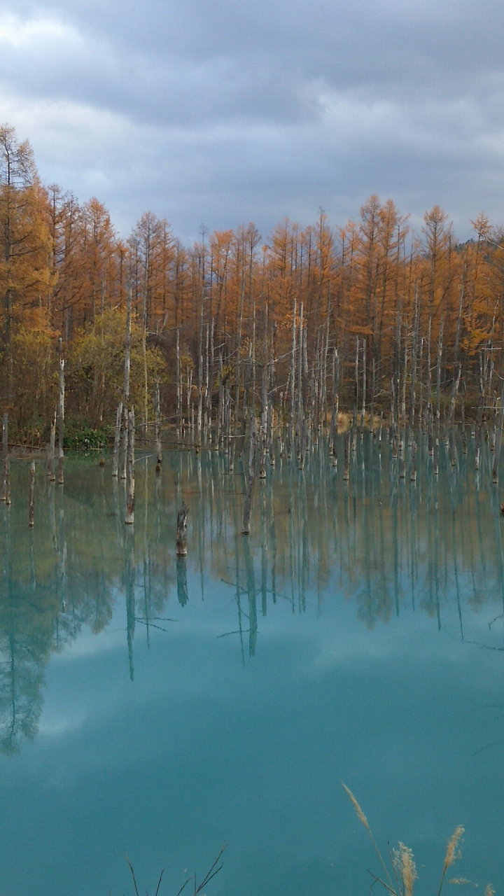 手前はそうでもないのですが、奥に行けばいくほど水が青くなり、まさに「青い池」です。