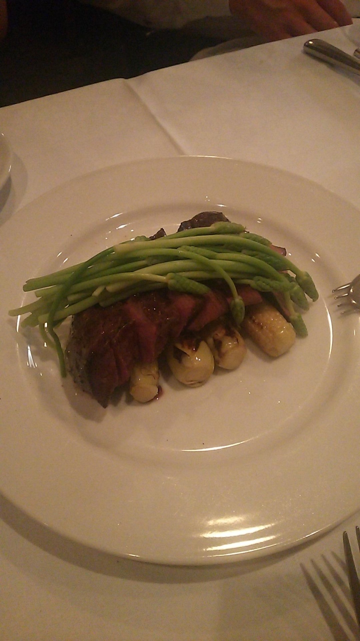 メインは豚の白ワイン煮込みと、牛ハラミの炭火焼き。