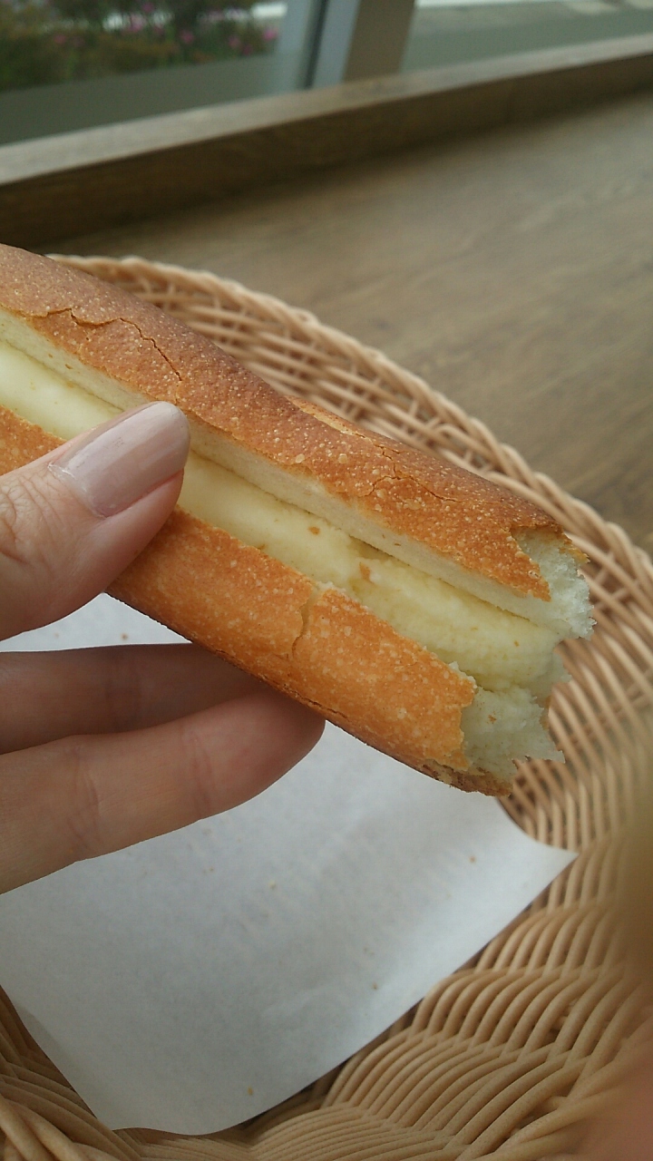 まわりがさくっとしたフランスパンに、練乳のような甘さのクリームがたっぷり入っています。抹茶味もありました。