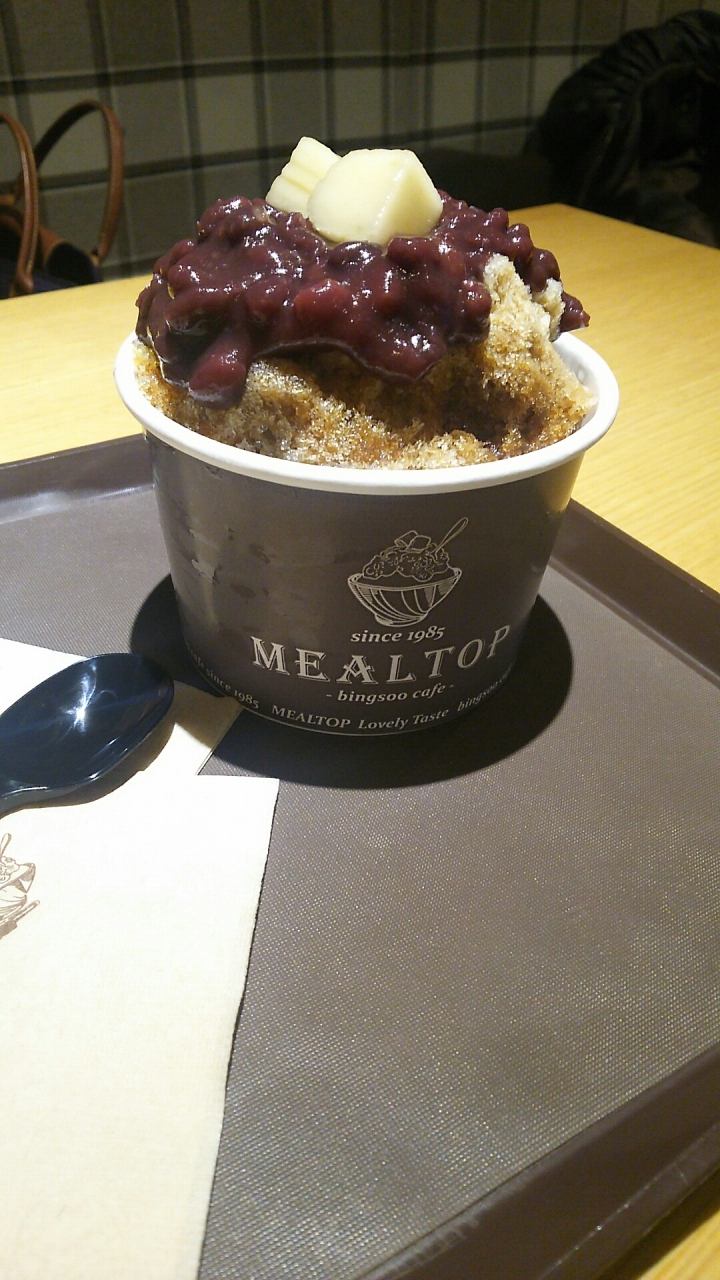 現代デパート内にあるMeal Topです。何種類もあるかき氷の中から、コーヒーかき氷をセレクトしました。6000ウォン。
